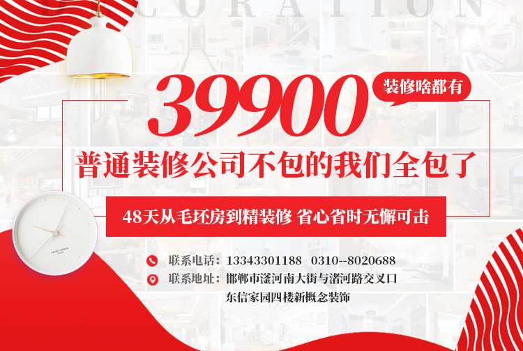 邯鄲市新概念裝飾公司是一家集裝飾設(shè)計(jì)、施工、主材、家具、配飾、售后一站式整體解決方案的裝飾公司。 公司推出“新概念完整家裝精裝修模式”適應(yīng)了不同消費(fèi)者需求,憑借其價(jià)錢透明、明白消費(fèi)、完整售后服務(wù)的優(yōu)勢(shì)及省時(shí)、省力、省心、更省錢的理念,顛覆了傳統(tǒng)家裝...【詳細(xì)】